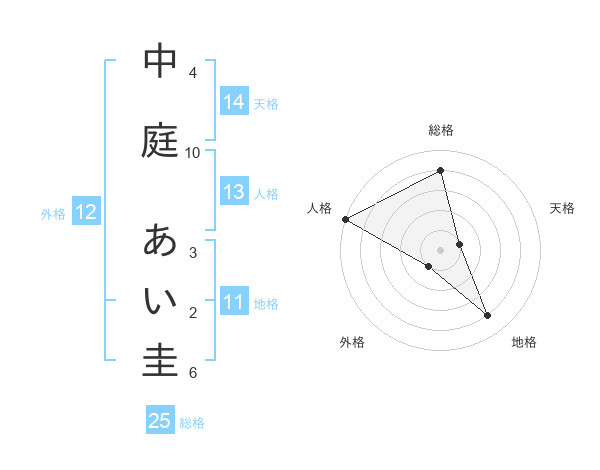 中庭 あい圭さんを姓名の画数から五運を鑑定