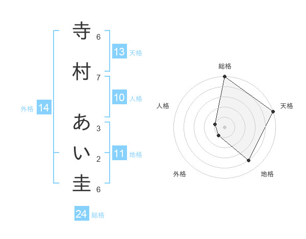 寺村 あい圭さんの総格は24画の5点!