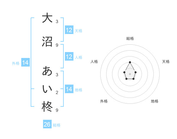 大沼 あい柊さんを姓名の画数から五運を鑑定