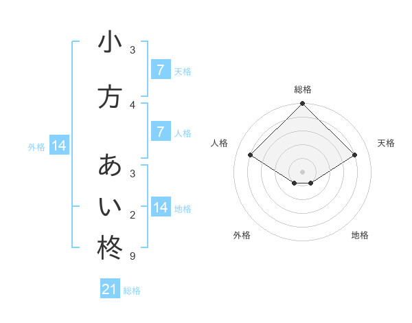 小方 あい柊さんを姓名の画数から五運を鑑定