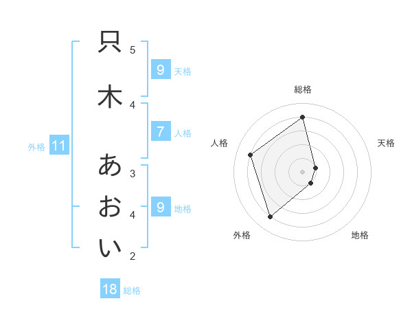只木 あおいさんの総格は18画の4点!