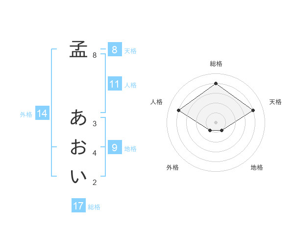 孟 あおいさんの総格は17画の4点!