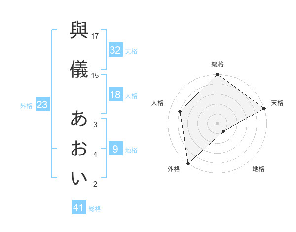 與儀 あおいさんを姓名の画数から五運を鑑定