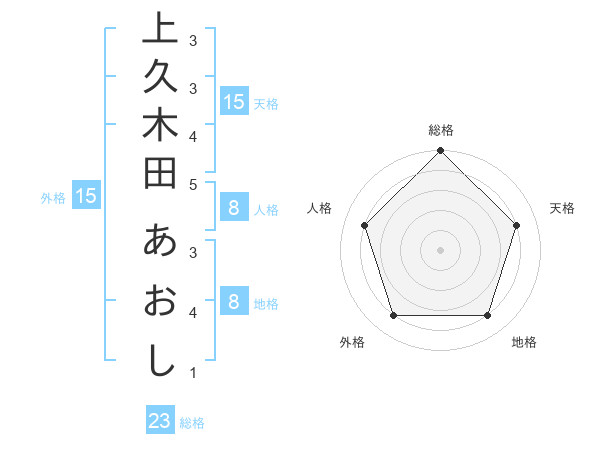 上久木田 あおしさんを姓名の画数から五運を鑑定
