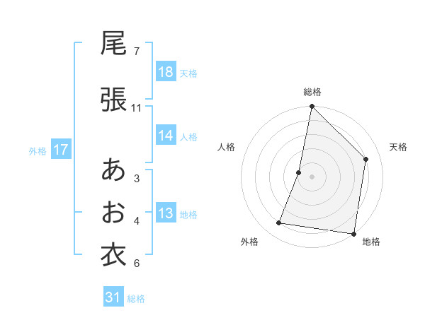 尾張 あお衣さんを姓名の画数から五運を鑑定
