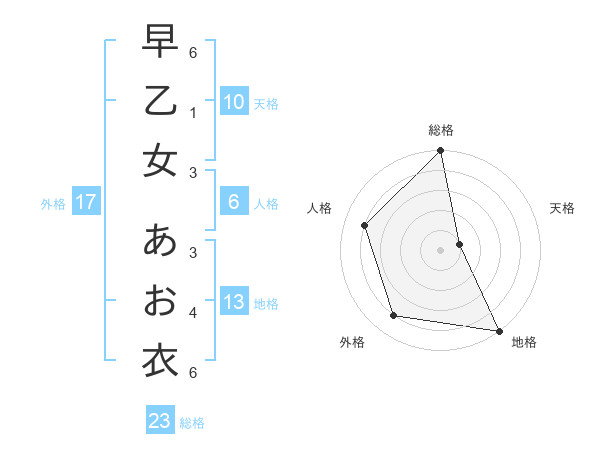 早乙女 あお衣さんを姓名の画数から五運を鑑定