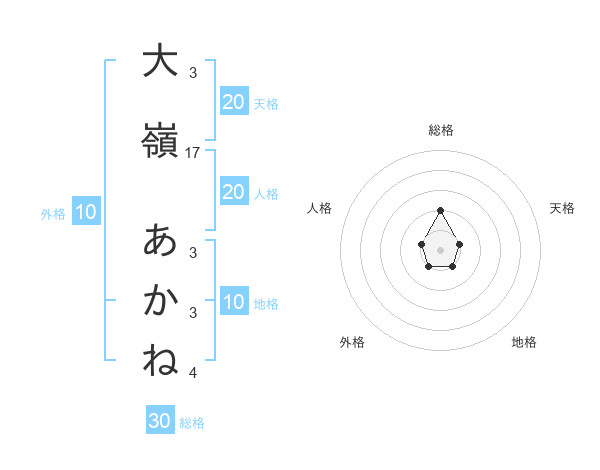 大嶺 あかねさんの天格は20画の1点!