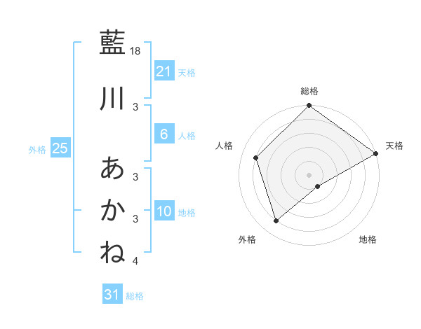 藍川 あかねさんの天格は21画の5点!