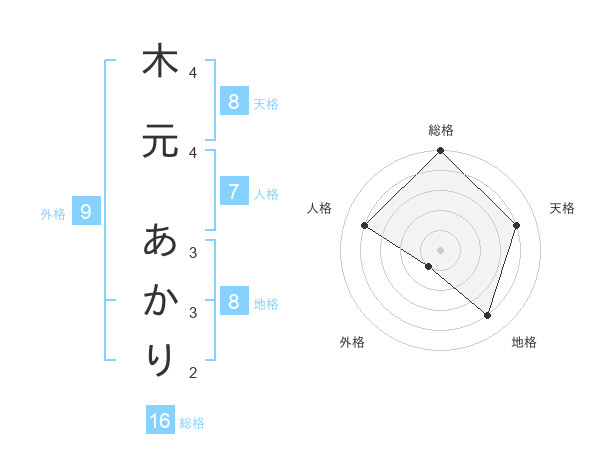 木元 あかりさんの天格は8画の4点!