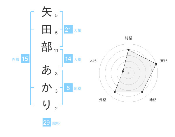 矢田部 あかりさんを姓名の画数から五運を鑑定