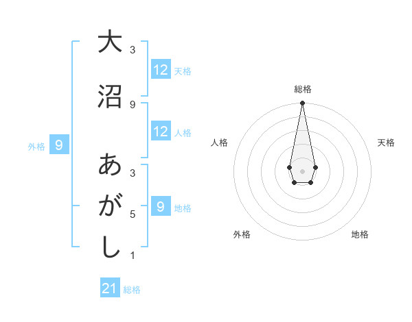 大沼 あがしさんを姓名の画数から五運を鑑定