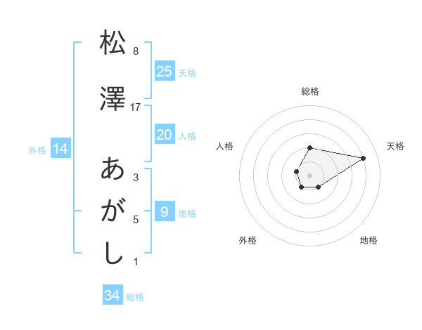 松澤 あがしさんを姓名の画数から五運を鑑定