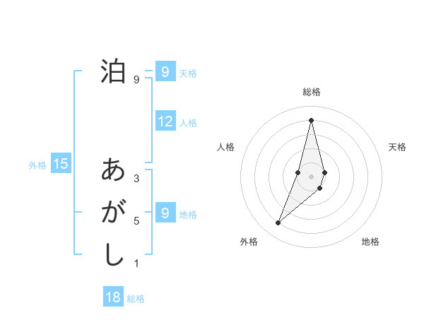 泊 あがしさんの総格は18画の4点