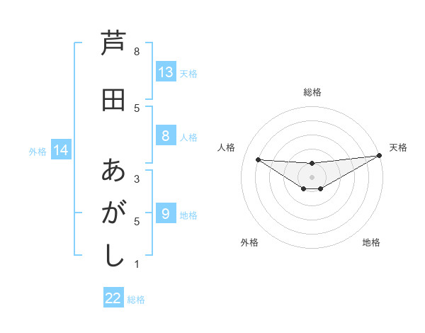 芦田 あがしさんを姓名の画数から五運を鑑定