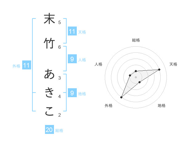 末竹 あきこさんを姓名の画数から五運を鑑定