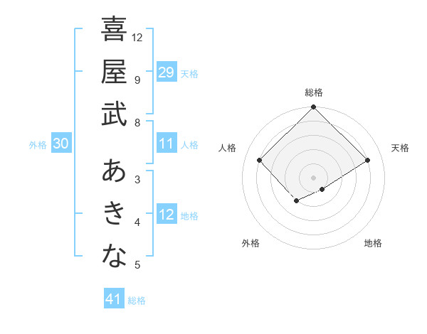喜屋武 あきなさんを姓名の画数から五運を鑑定