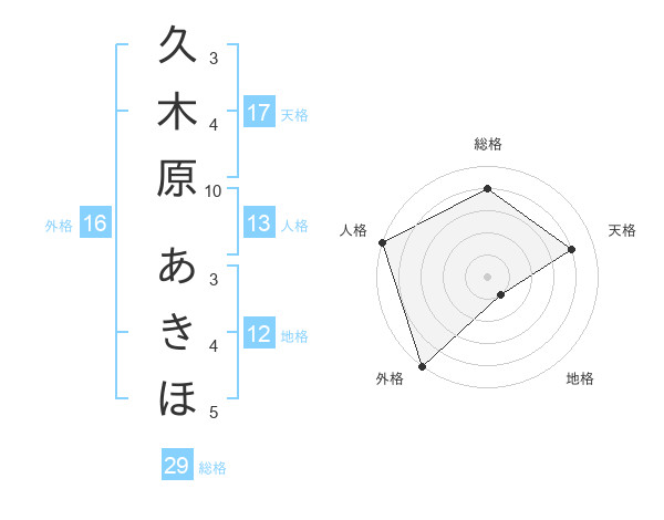 久木原 あきほさんを姓名の画数から五運を鑑定