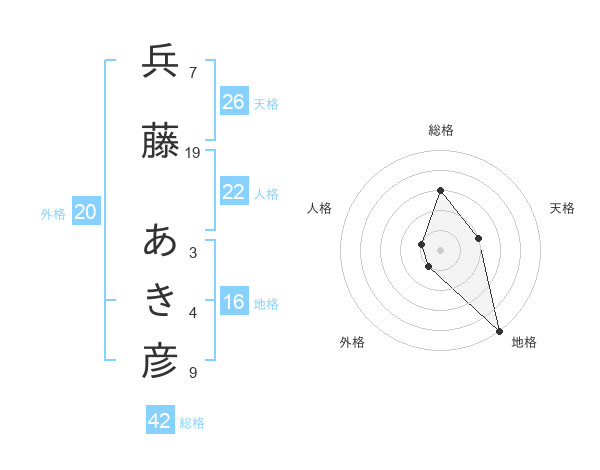 兵藤 あき彦さんを姓名の画数から五運を鑑定
