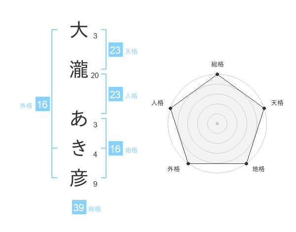 大瀧 あき彦さんを姓名の画数から五運を鑑定