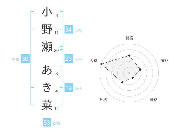小野瀬 あき菜さんを姓名の画数から五運を鑑定