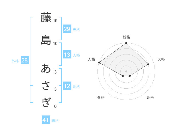 藤島 あさぎさんを姓名の画数から五運を鑑定