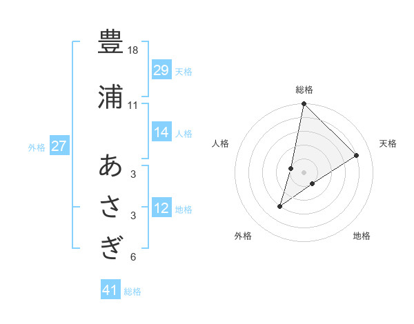 豊浦 あさぎさんを姓名の画数から五運を鑑定