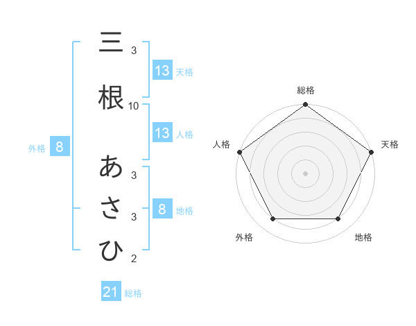 三根 あさひさんの天格は13画の5点!