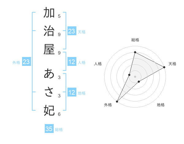 加治屋 あさ妃さんを姓名の画数から五運を鑑定