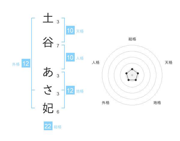 土谷 あさ妃さんの総格は22画の1点!