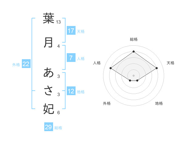 葉月 あさ妃さんを姓名の画数から五運を鑑定