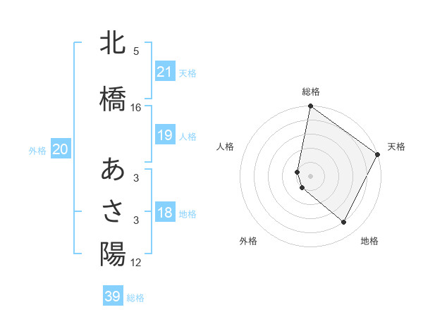 北橋 あさ陽さんを姓名の画数から五運を鑑定