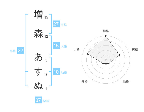 増森 あすぬさんの総格は37画の5点!