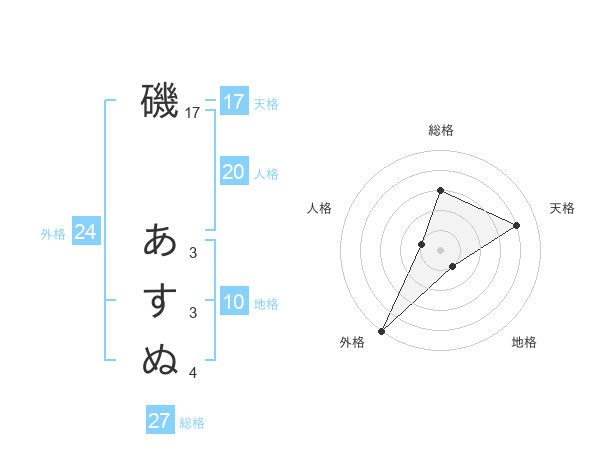 磯 あすぬさんの天格は17画の4点!