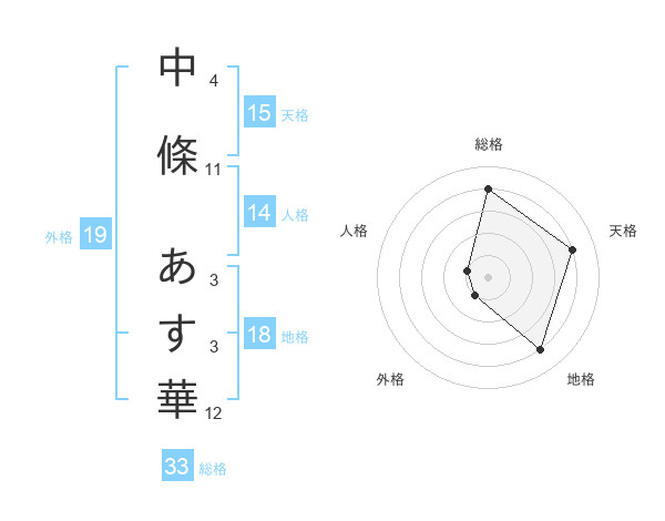 中條 あす華さんの天格は15画の4点!