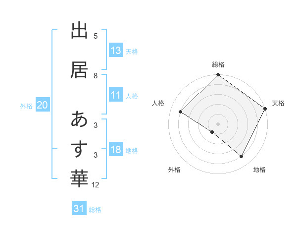 出居 あす華さんの天格は13画の5点!