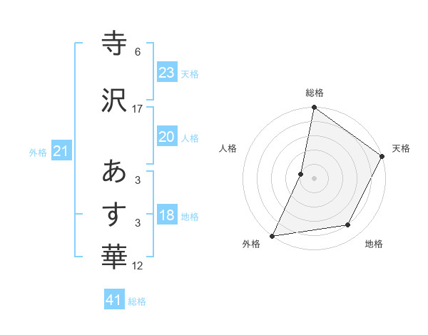寺沢 あす華さんの外格は21画の5点!