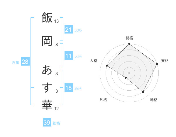 飯岡 あす華さんの総格は39画の5点!
