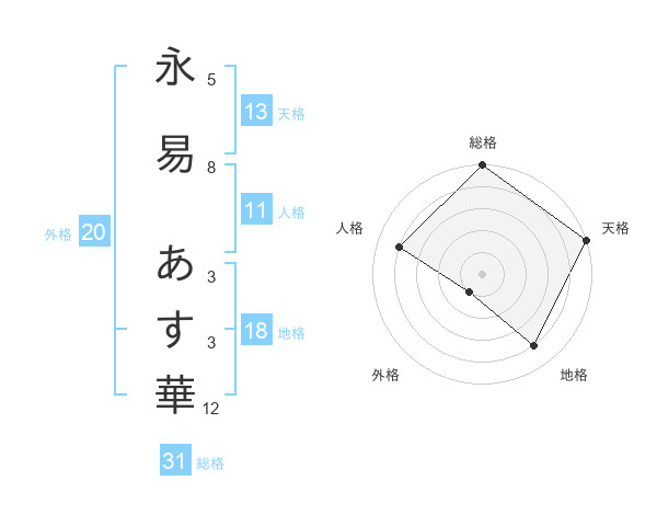 永易 あす華さんの総格は31画の5点!