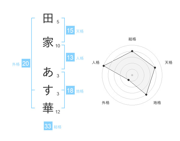 田家 あす華さんの天格は15画の4点!