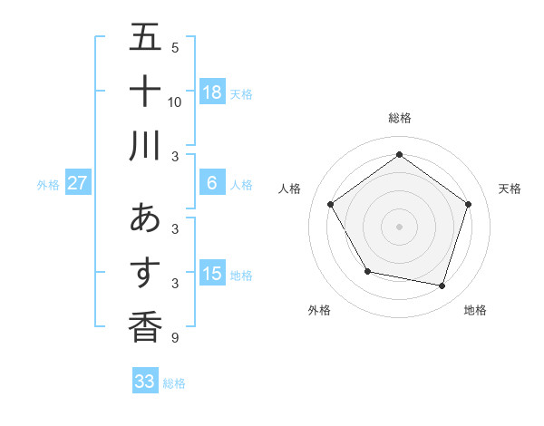 五十川 あす香さんを姓名の画数から五運を鑑定