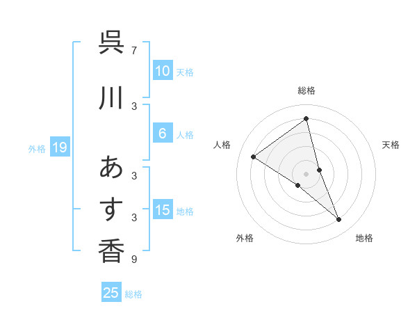 呉川 あす香さんを姓名の画数から五運を鑑定