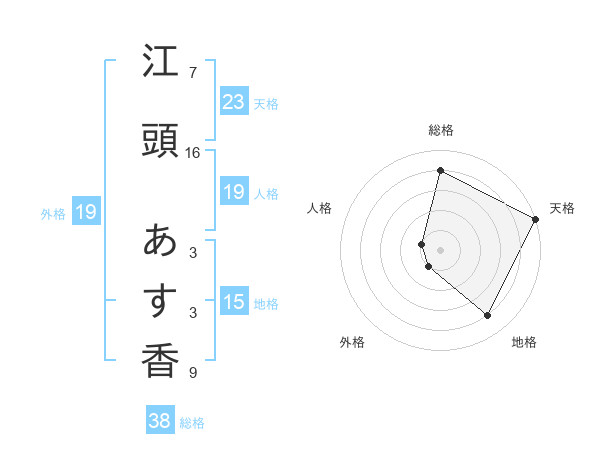 江頭 あす香さんを姓名の画数から五運を鑑定