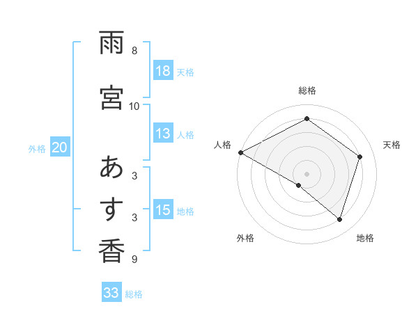 雨宮 あす香さんを姓名の画数から五運を鑑定