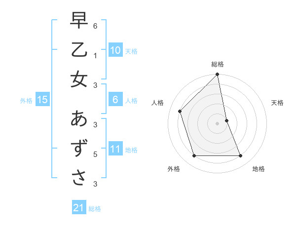 早乙女 あずささんを姓名の画数から五運を鑑定