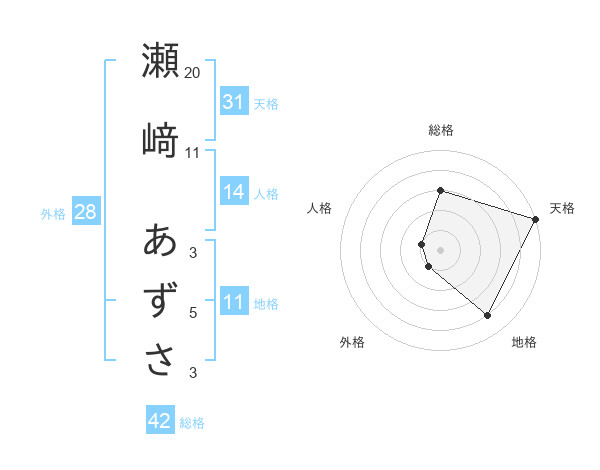 瀬﨑 あずささんを姓名の画数から五運を鑑定