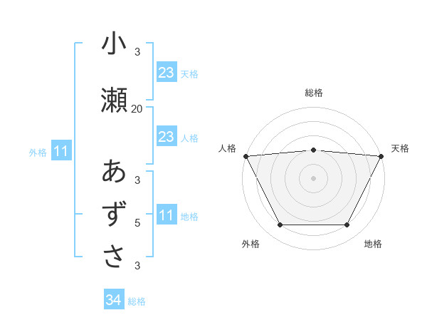 小瀬 あずささんの天格は23画の5点!