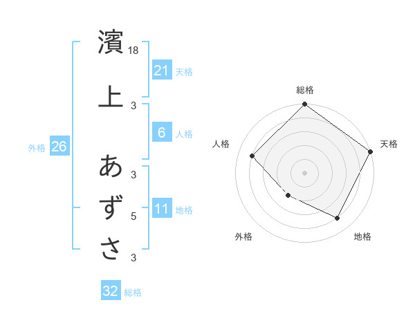 濱上 あずささんの天格は21画の5点!