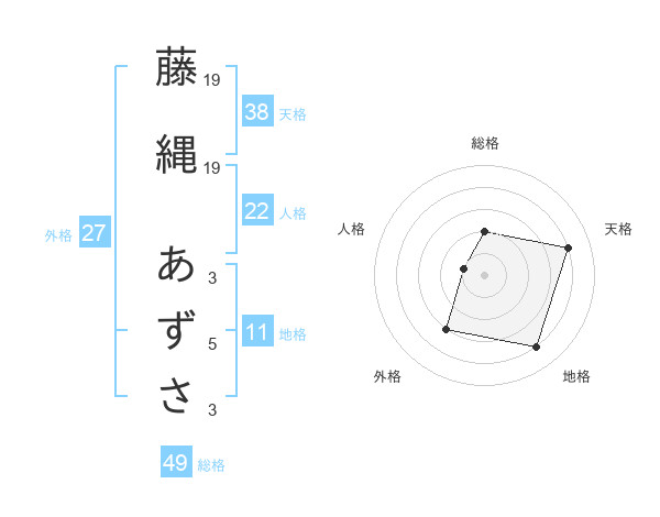 藤縄 あずささんの天格は38画の4点!