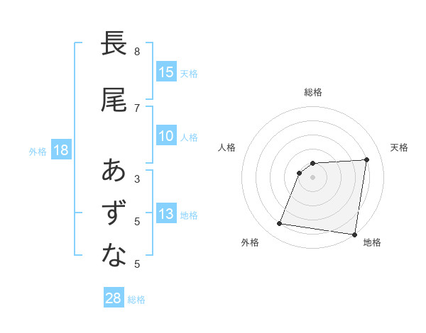 長尾 あずなさんを姓名の画数から五運を鑑定
