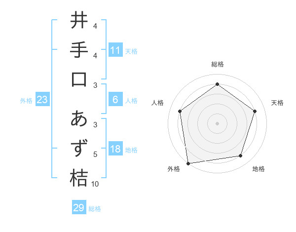井手口 あず桔さんを姓名の画数から五運を鑑定
